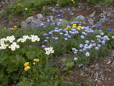 三十年前、エーデルワイスという名前につられて初めて登った大平山、そこはまさに天上お花畑、、、その花々が心ない盗掘やオーバーユースによる踏み荒らし等により年々花の数を減らし危機的状況です。今年の春には登山口までの道路が整備開通することになり、この花々たちを次の世代に残せるかどうかが今正念場になっています。