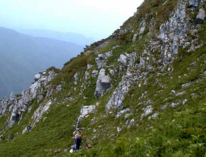 特に第二ピーク下、石灰岩地帯への入り口の岩場は年々崩壊が激しく、