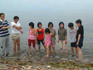 | 浜は子供、若者たちでにぎわいはじめまし。 | 足だけつかっただけでも気持ちがいいね。 |