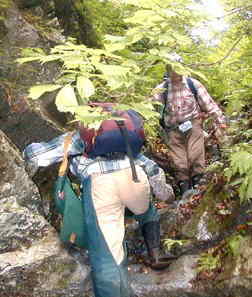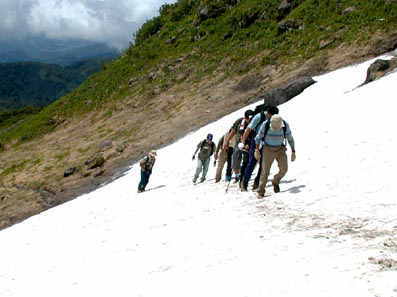 | これが固有種シリベシナズナ、ペンペンブサの仲間です。 | 植物調査も結構ハードなんです。 |