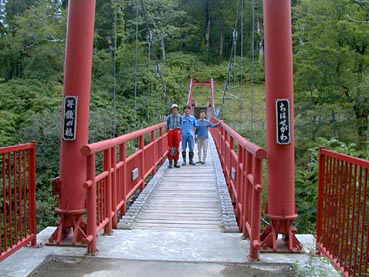 | 吊り橋の奥がブナの原生林 | 遊歩道はゆっくり回っても一時間くらい |