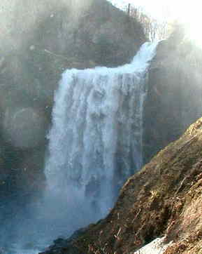 | 雪解けの水を集め滝の水量は まぁまぁ多く飛沫でレンズが曇りました。 |
