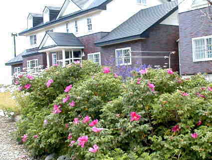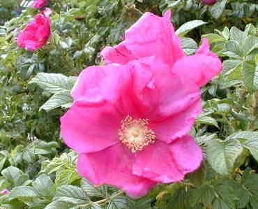 | 今年のハマナスは、陽気のせいか、花が大きく綺麗です。 | こんな白いハマナスもありますよこれは植えられたものですが、 少数ですが自生しているところもあるようです。 |