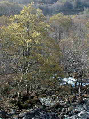 | 芽吹き始めたブナ去年は全く花をつけなかったが、 今年はびっしり花が付いています。 |