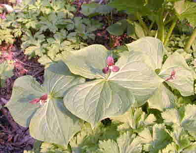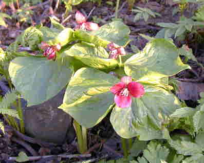 | オオバナエンレイソウ、島牧では比較的数の少ない エンレイ草です。北大の校章にもなっている花です。 |