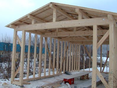 十二月になり建て始めたときには雪が降りだし 先が思いやられ |