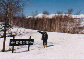 しかし標高400mを超える賀老高原は、五月の連休ごろでもまだ2〜3mの積雪があります。当然車ではいけませんので雪の上を、クロカンのスキーやつぼ足で歩いていくことになります。