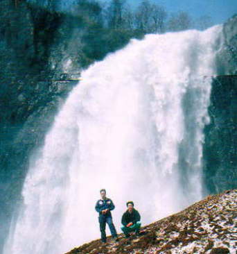 幅35m落差70mの大瀑布、汗をかきかきここまでたどり着いた人たちだけが、味わえる満足感です。