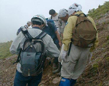 登山口までの道路の開通予定が現実のものとなり、又同じオオヒラウスユキスソウの咲くキリギシ山が入山制限になったり、熟年者の登山ブームもあり登山者の数は年々増加の一途をたどり、花々へのダメージも重大なものになってきました。