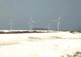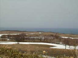 海岸は、春なのですが月越高原はまだ1メーターの雪がありましす、風力発電の風車はい勢い良く回っていました。