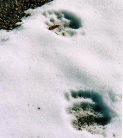 初雪の上にヒ熊の足跡!! ナメコを取りに行ったとき雪の上に足跡がありました。 島牧には、50〜60頭の熊が生息しているといわれていますが、特に春と秋は、人と遭遇する機会が多くなります。 十分気をつけて行動しなくてはなりません。 まず自分の存在をを相手に知らせることが大事です、子連れ、手負いのクマは特に危険です。 また、鉈を一つ持ってあるくと、いざというときに、命が助かる確率はずっと上ります。 |