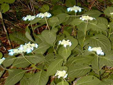 | このブナの森に住むブドウマイマイというカタツムリ | 蝦夷アジサイが満開です。 |