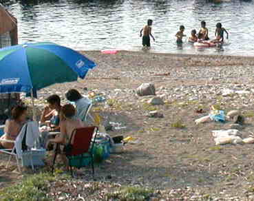 | 浜は子供、若者たちでにぎわいはじめまし。 | 足だけつかっただけでも気持ちがいいね。 |