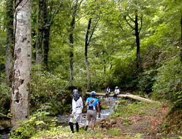 | 吊り橋の奥がブナの原生林 | 遊歩道はゆっくり回っても一時間くらい |