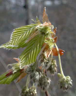 | 芽吹き始めたブナ去年は全く花をつけなかったが、 今年はびっしり花が付いています。 |