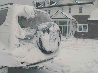 | 車にも雪の花が咲きます。 | 風が強いので、影になっているところにしか 雪はつきません。 |