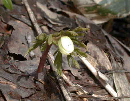 | オオバナエンレイソウ、島牧では比較的数の少ない エンレイ草です。北大の校章にもなっている花です。 |