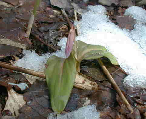 コジマエンレイソウ、 エンレイソウとオオバナエンレイソウとの交雑種 と言われています、比較的珍しい花です。 |