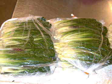 | 今が旬の行者ニンニク今日はたくさんとれました。 | さっと湯がくのですが、、なかなか強烈な臭いです。 |